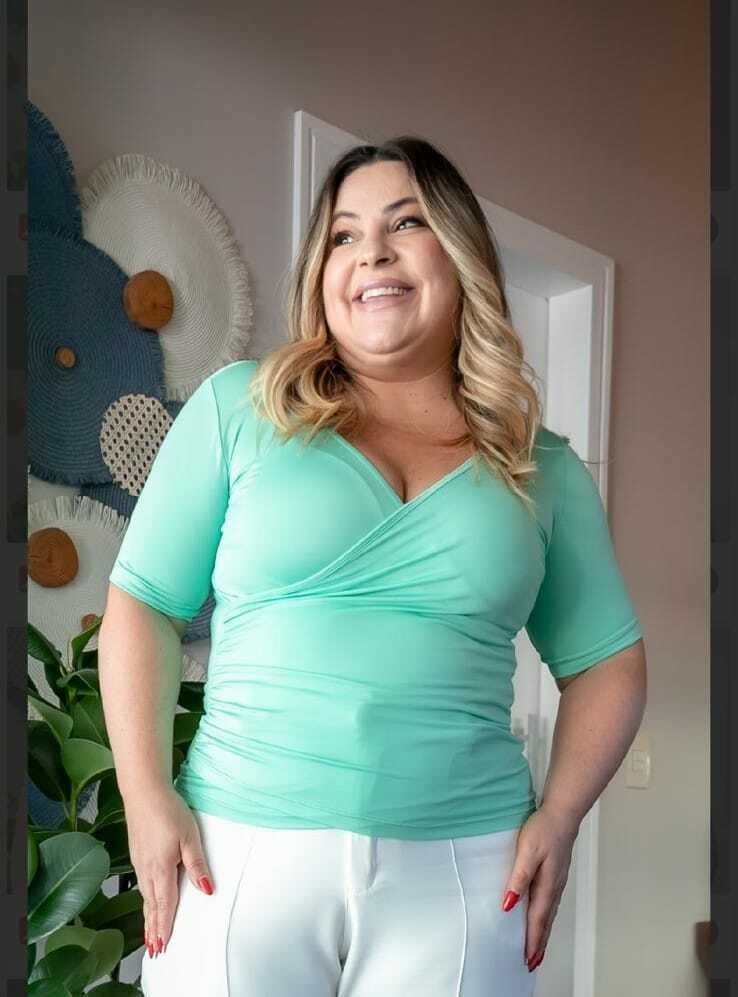 A Blusa Nanda é confeccionada em poliamida, tecido leve e macio que garante caimento impecável e toque agradável na pele. Com design transpassado, traz elegância e valoriza a silhueta, enquanto a cor verde adiciona frescor e versatilidade ao visual.