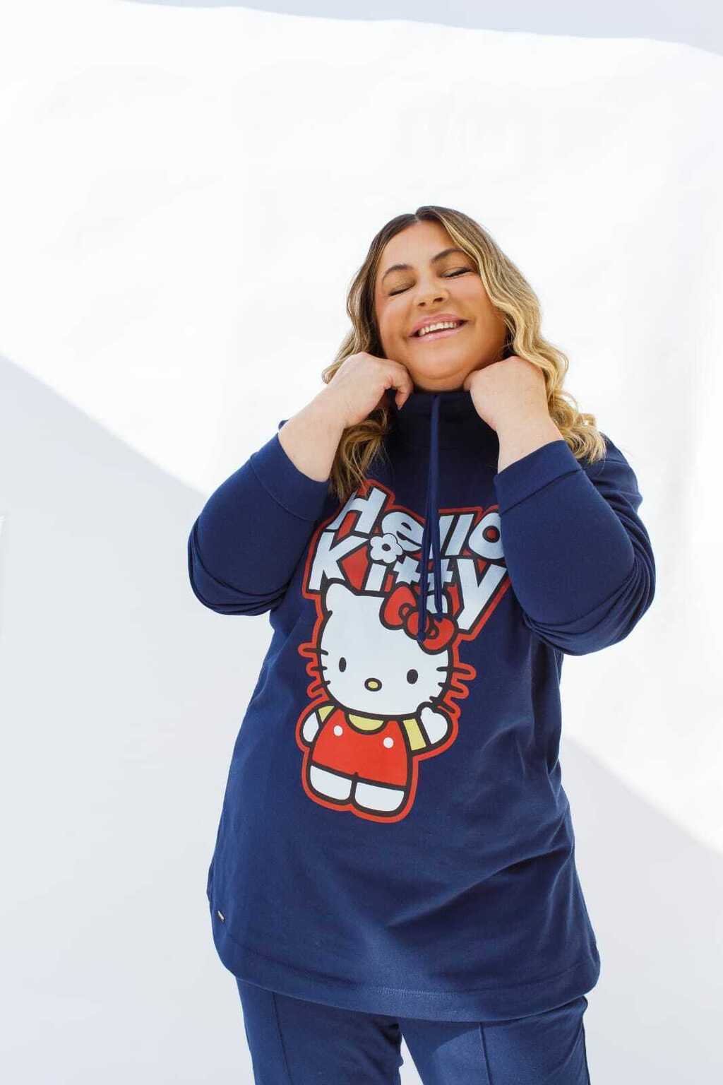 Conjunto com blusa de manga longa e calça, em tecido macio com elasticidade e estampa da Hello Kitty. Ideal para o dia a dia ou momentos de descanso.