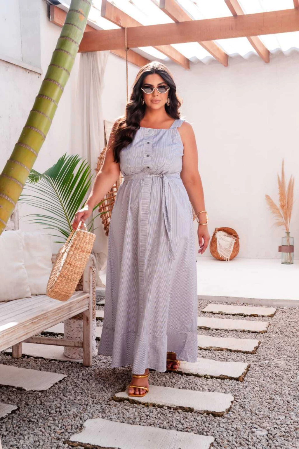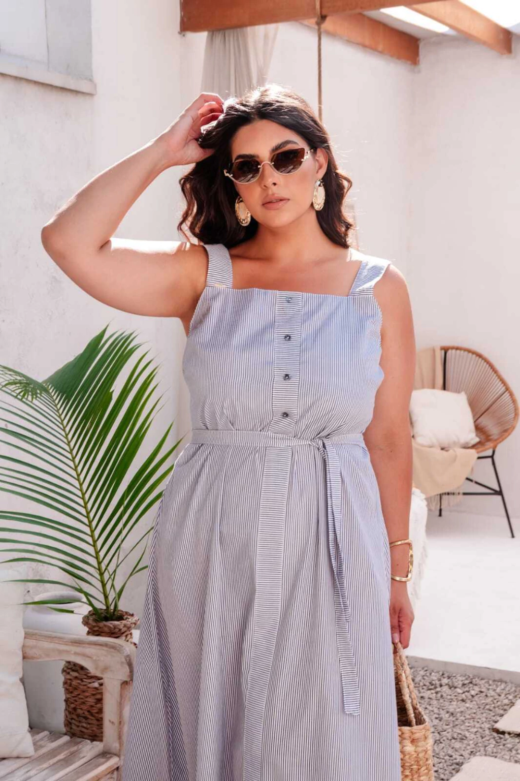 Clássico e elegante, o Vestido Nicole traz o charme atemporal das listras em uma modelagem moderna e feminina.